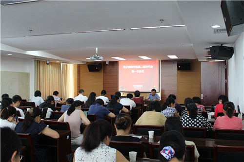 9月14日,电子商务学院第二届双代会第一次会议暨全体教工大会在中和楼1007会议室举行。校党委委员副校长徐盈群、电商学院院长陈明、党总支副书记副沈央珍、副院长史勤波、院长助理蔡简建、工会主席赵进军出席本次会议。全体教职员工参加了本次会议。
