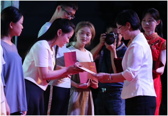 教务处副处长 林炯捷老师为优秀毕业论文获奖者颁奖