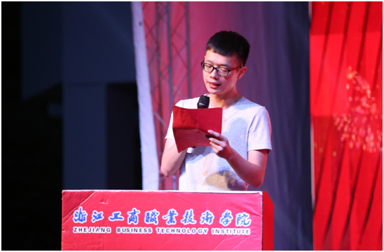 王磊,“劲牌阳光奖学金”暨“践行工匠精神先进个人”获得者,作为学生代表发言,他说,踏入工商门,永远工商人。