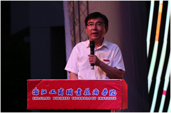 接下来由电子商务学院院长陈明发言,他风趣又饱含真情的讲话,像一个溺爱孩子的父亲,包容孩子的任性,支持孩子的梦想。他祝愿毕业生在漫长的人生旅途中发光发热,同时希望毕业生不忘母校。