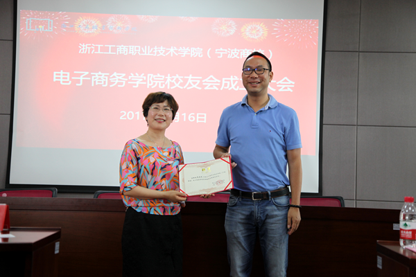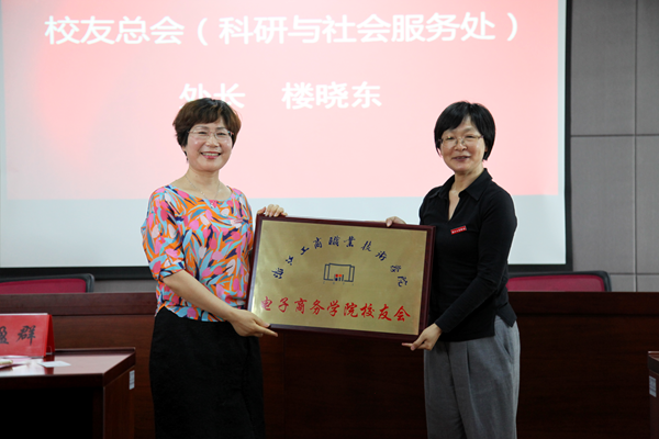 会议第二项议程,举行电子商务学院校友会成立授牌仪式。bv1946伟德国际始于英国副校长徐盈群授牌牌。