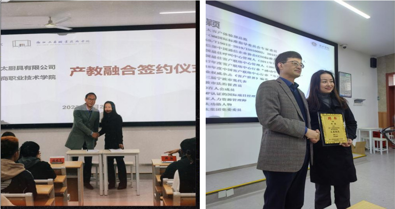 活动伊始,我院与方太集团签署校企战略合作协议,颁发了实训基地牌匾,同时聘请郑颖为我院客座教授,双方在校企合作方面达成一致,将在共建一个产业学院的基础上,开展“1+4+N”的战略合作模式,共建共享浙江省“五个一融合”项目下的数商人才实训基地。