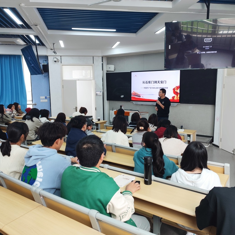 最后,邓老师向同学们简述了史上最牛创业团队——中国共产党,概括出了四点:人、道路、实事求是的指导思想和进化能力。希望同学们能牢记党的章程,不负初心,跟随党的脚步坚定不移地走下去。