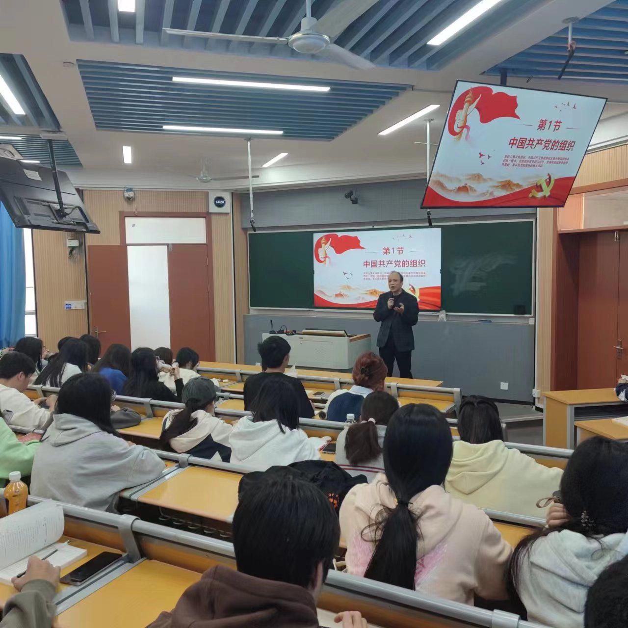 本课时主题为“党的组织原则和纪律”,励老师分别从两个内容进行讲解,第一个内容为“中国共产党的组织”,分为以下四个方面:一、党的力量来自组织,二、党的组织制度,三、党的组织体系,四、党的组织生活。励老师生动形象的讲解,告诉了同学们中国共产党是根据自己的纲领和章程,按照民主集中制组织起来的统一整体。党的组织是党赖以存在、发展和完成使命的物质基础,是实现党的领导的基本保证。
