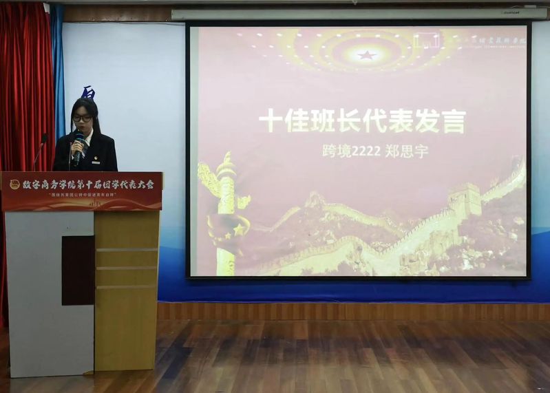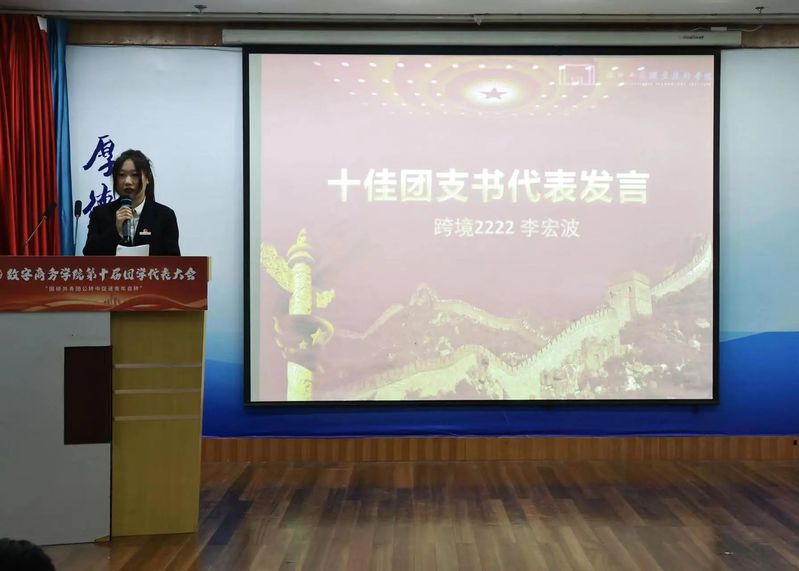 在计票期间公布了这一学年的十佳团支书及十佳班长名单并给予他们奖状,十佳团支书代表跨境2222李宏波同学及十佳班长代表跨境2222郑思宇同学上台发言分享了他们这一年的工作心得。