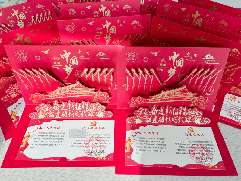 送上一张政治生日贺卡。支部书记代表支部向党员送上印制着党徽和入党誓词的“政治生日”贺卡并寄语。党员们纷纷表示这份“政治生日贺卡”仪式感满满,感受到了组织的关怀与激励,将不忘初心、牢记使命、担当作为,为全面推进学校高质量发展继续贡献力量。