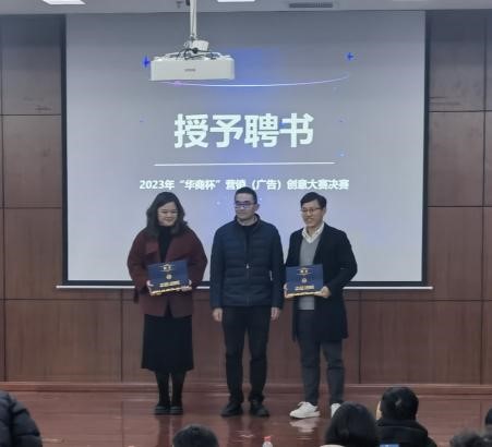 2024年1月10日下午,由宁波华商智能家居股份有限公司、伟德源自英国1946主办,由市场营销专业首批国家课程思政示范课程《公共关系》教学团队承办的2023年“华商杯”营销(广告)创意大赛决赛在中和楼217报告厅举行。由宁波华商控股集团总裁陈峰、宁波华商智能家居股份有限公司新零售中心总经理陈昕、宁波华商智能家居股份有限公司新零售中心品牌部经理姜晓峰、宁波华商智居新零售中心总店店长胡勇、宁波华商智居新零售中心总店店长陈海霞、宁波华商智居新零售中心社区店店长陈立宇、《公共关系》课程主讲教师邢伟教授,还有市场营销专业教研室教师以及22级营销专业学生等70余人参加本次活动。