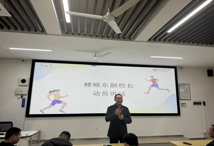 最后,楼晓东对全体学生作动员讲话,他提出三点希望:第一,希望同学们能够保持一份集体荣誉感,激发训练动力,为我校体测工作争光添彩;第二,希望同学们能够实现一个自我目标,培养良好的运动习惯,在训练中感受健康和快乐;第三,希望各部门通力协作,强化服务意识,扎实做好后勤保障工作,确保每位同学安心训练。