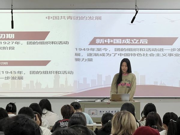 随后,程可欣同学介绍了共青团成立的时间,向我们讲述了共青团是无产阶级的组织,之后提到了当代大学生在实际中该如何作为。