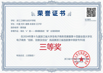 历时半年的第十九届浙江省大学生电子商务竞赛暨第十四届全国大学生电子商务“创新、创意及创业”挑战赛浙江省选拔赛在6月底圆满结束。本届竞赛由浙江省大学生科技竞赛委员会、全国大学生电子商务“三创赛”竞赛组织委员会主办,浙江工商大学、中国计量大学承办。