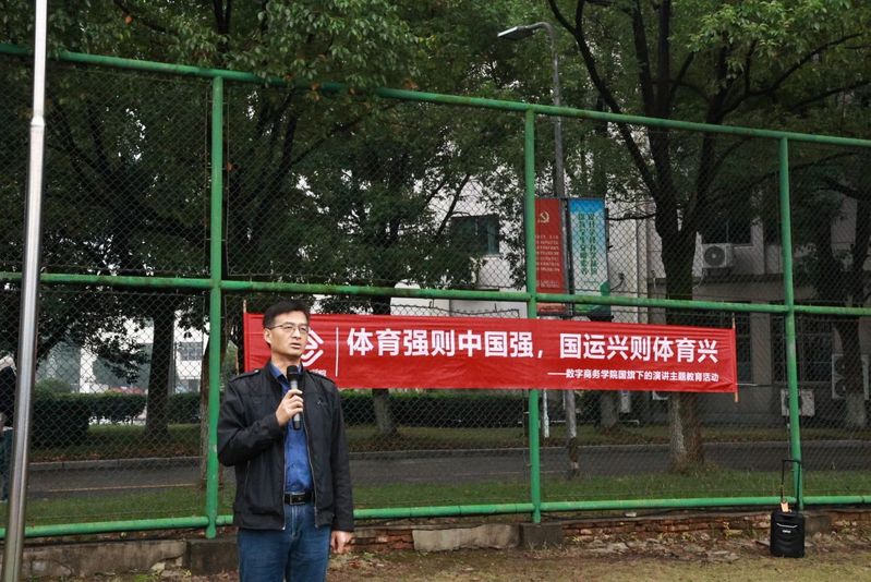 在主持人对以上环节作简单总结后,分院党总支书记沈弥雷就本次活动的主题精神倾情寄语。沈书记强调“体育,承载着国家强盛、民族复兴的梦想,体育强国梦是同中国梦同频共振的,要继续发扬为国争光、无私奉献、科学求实、遵纪守法、团结协作、顽强拼搏为主要内容的中华体育精神。”