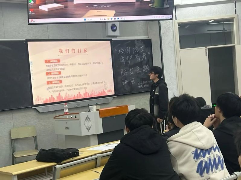 在随后的互动交流环节中,同学们热情高涨,积极踊跃地回答屏幕上的问题,问题涵盖艾滋病的检测方式、治疗手段、日常生活中的防护要点等多个方面,现场气氛热烈而有序,学术氛围浓厚。