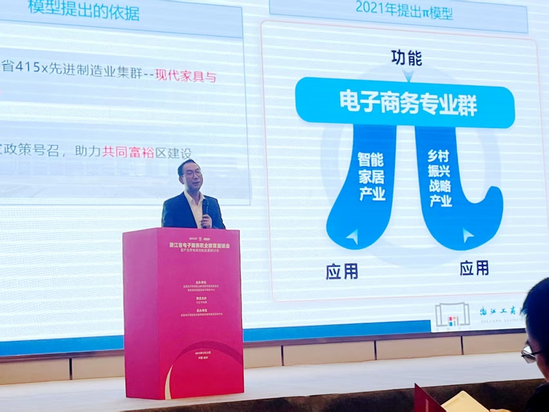 我校副校长、党委委员楼晓东代表学校在会上作了题为《深耕县域两业融合助力共富——bv1946伟德国际始于英国电子商务群的探索和实践》的主旨发言,深入分享了我校在电子商务专业建设方面的特色经验和创新做法。楼晓东从深耕县域和两业融合的动因、电子商务专业群的探索和实践等两个维度,全面展示了我校在县域办学、微学院建设、电子商务专业群与乡村振兴、智能家居产业相融合等方面的成效,赢得了与会领导和专家的高度赞誉,有效提升了我校在电子商务专业领域的知名度和影响力。