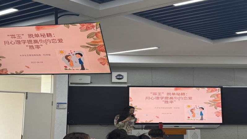 2025年4月9日,由心理中心陈百卉老师主讲的“‘寡王’脱单秘籍:用心理学提高你的恋爱‘胜率’”讲座在思齐楼22B7开展。此次讲座为同学们解析了恋爱中的心理现象,还分享了许多实用的交往技巧。