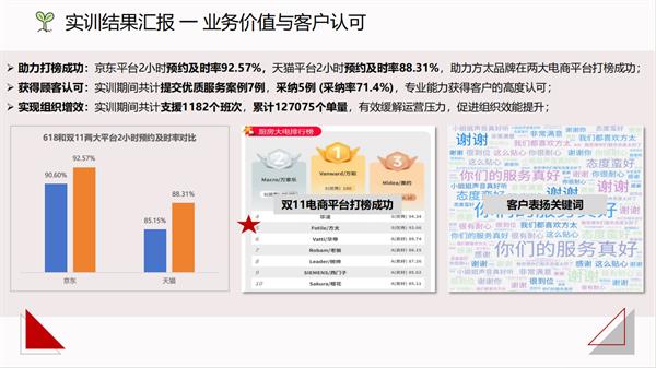 汤文杰主管带来的实训结果汇报堪称“干货炸弹”:本次实践班预约及时率92.57% ,支援1182个班次,累计12.7万单量,一组组鲜活数据,不仅见证了同学们从“课堂萌新”到“客服能手”的蜕变,更彰显了“真题真做”模式的超强赋能效果。